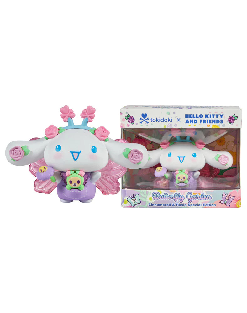 A rare bloom has landed! The tokidoki x Hello Kitty and Friends™ Butterfly Garden Special Edition Cinnamoroll™ and Rosie features exclusive colors, delicate rose details, and translucent wings—making this garden guest truly something special! Don’t Let This One Flutter Away!